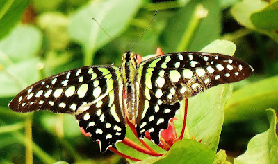 The Tailed Jay butterfly was one of my favourites in the Butterfly world because it reminded me of a moth and a butterfly st the same time. Apart from staying still just this once, it fluttered in rapid wingbeats around the flowers. My camera just didn't have a good enough calibre to take in-flight butterfly pictures.